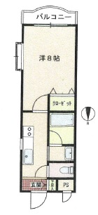 | 間取 | 1K | 専有/バルコニー | u/− |
